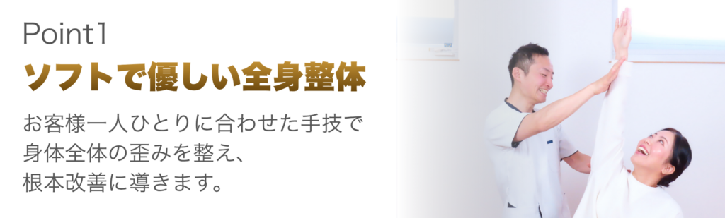 1.徹底した原因の追究、症状説明を心がけ、患者様に安心して頂ける施術をご提供致します。